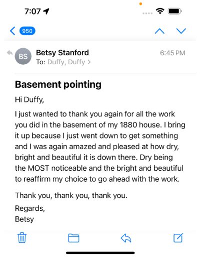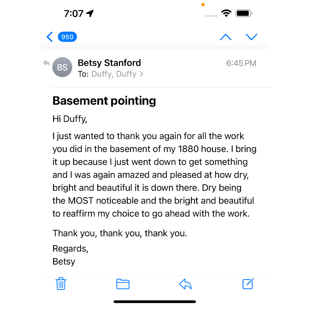 In the end your basement/foundation walls will look great with old world-hand crafted aesthetic that’s clean and neat. Any home or insurance inspector will be impressed with the results.