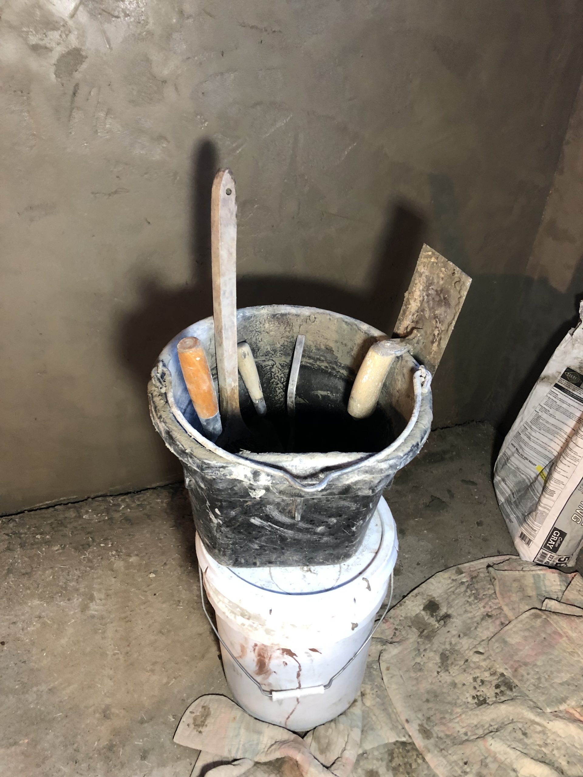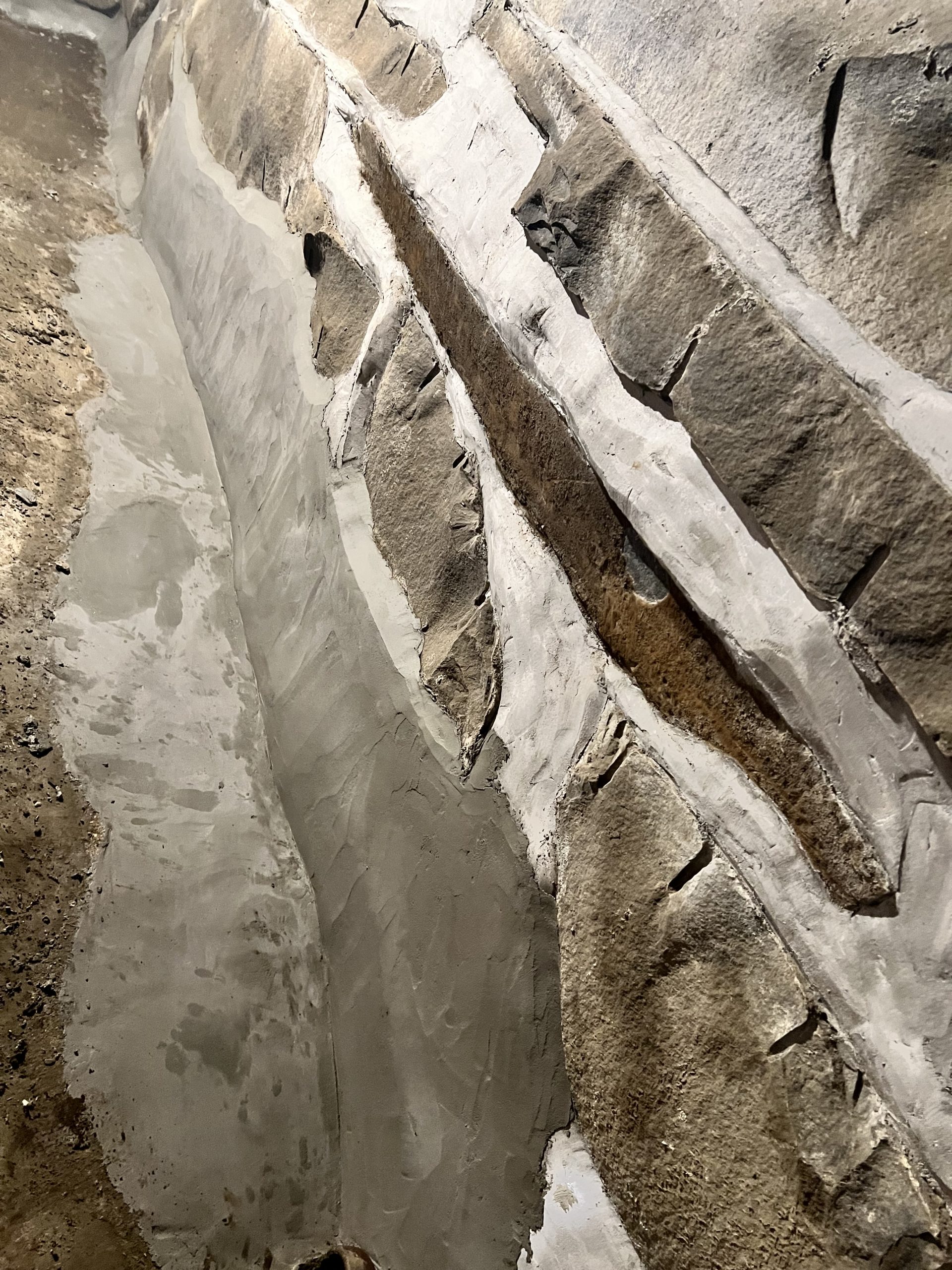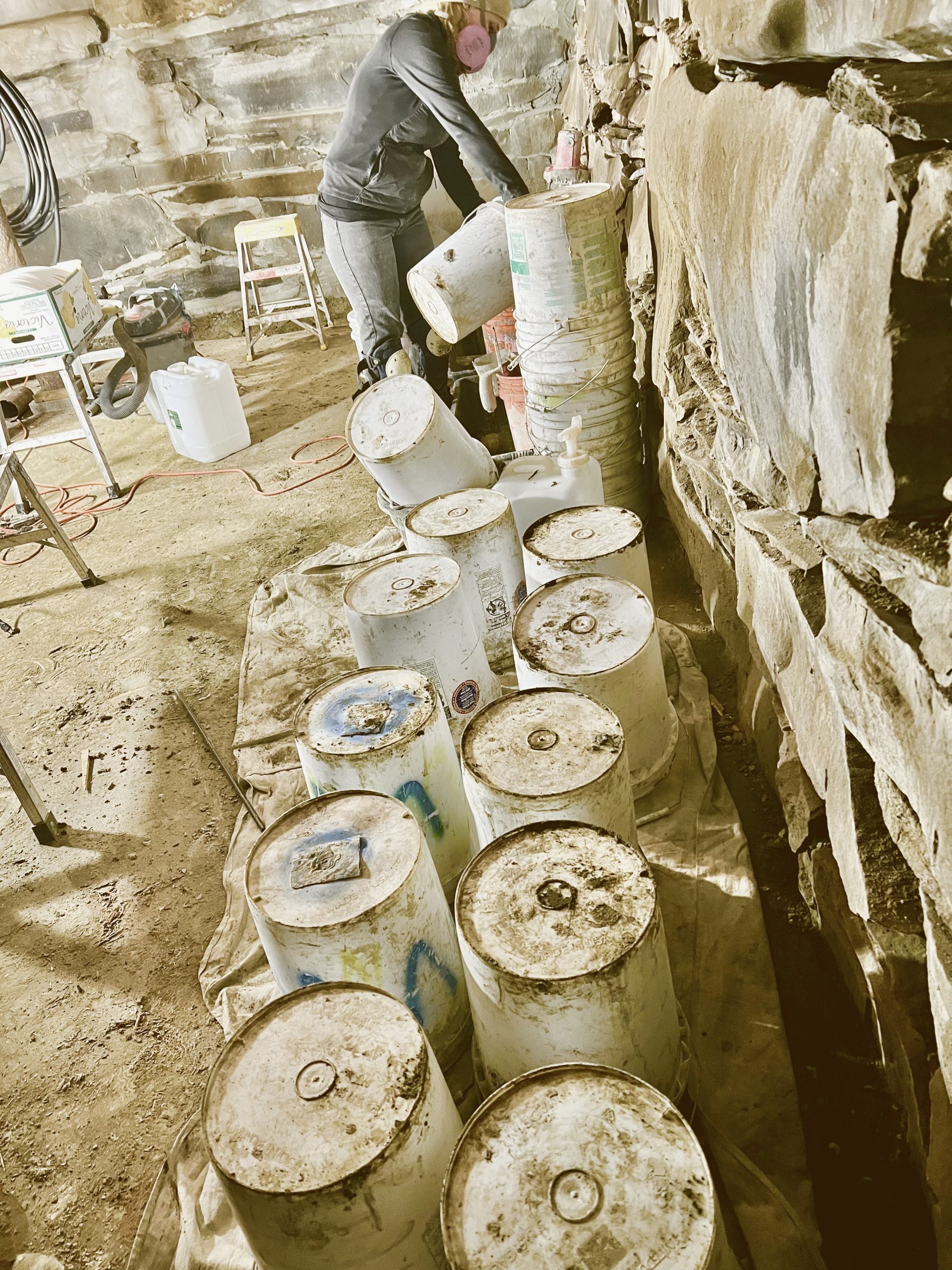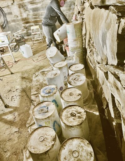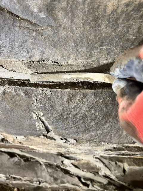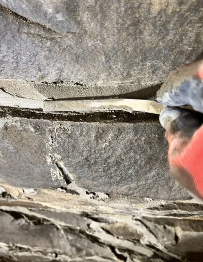 2) Mortar injection: A “grout bag” (which is like a large pastry bag) is filled with mortar and injected into all the deeper holes and gaps.