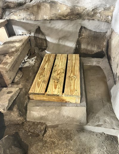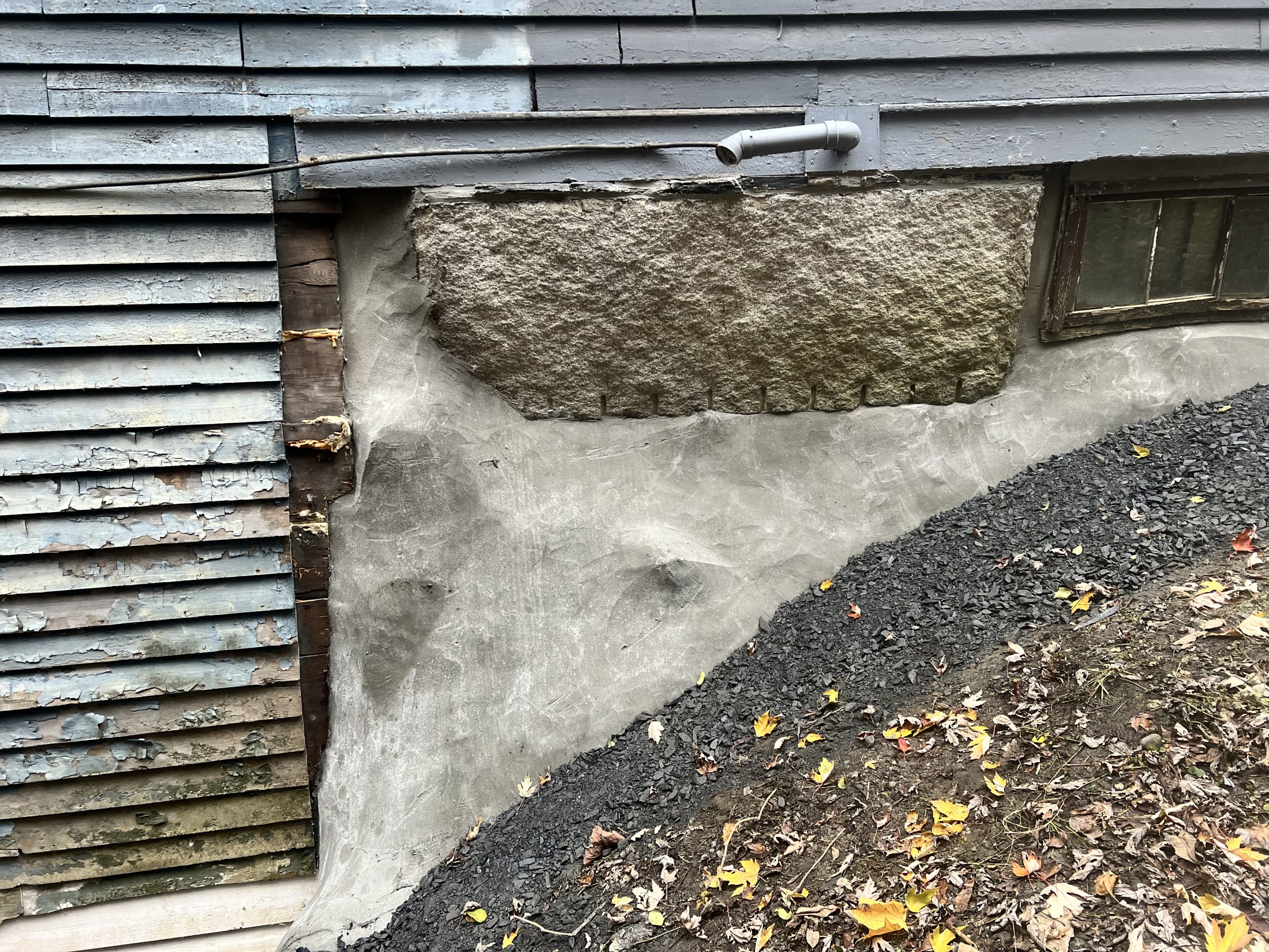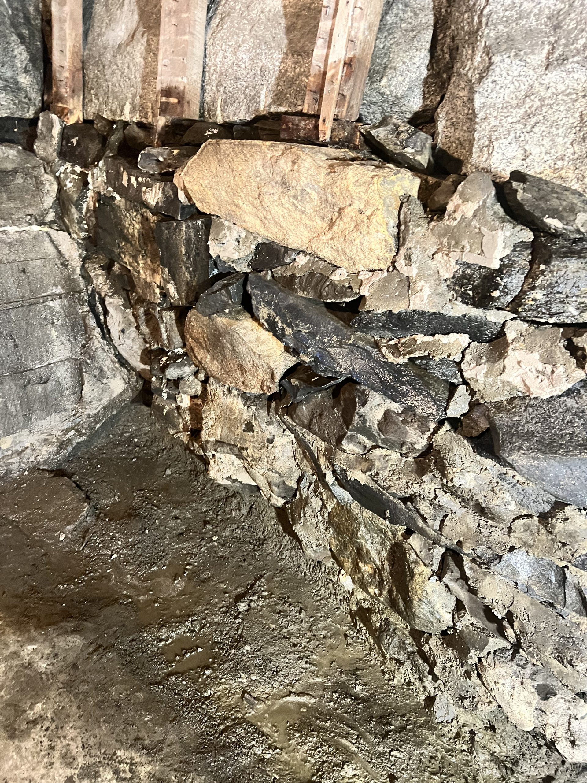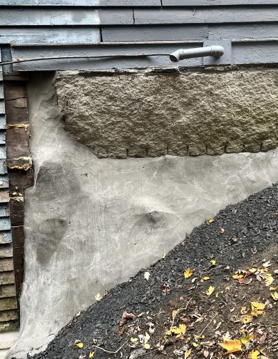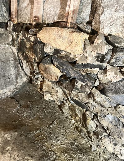 From inside the basement of a typical Vermont older home we have access to the stone, brick or concrete block Foundation. For a complete repair and restoration the following steps will be taken: